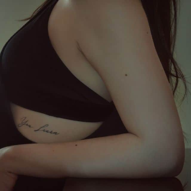 - Під грудьми роблять написи з інтимним значенням, щоб їх бачила тільки кохана людина. Ще тут можна набити емоційно глибокий, що розповідає про почуття і переживання, текст.