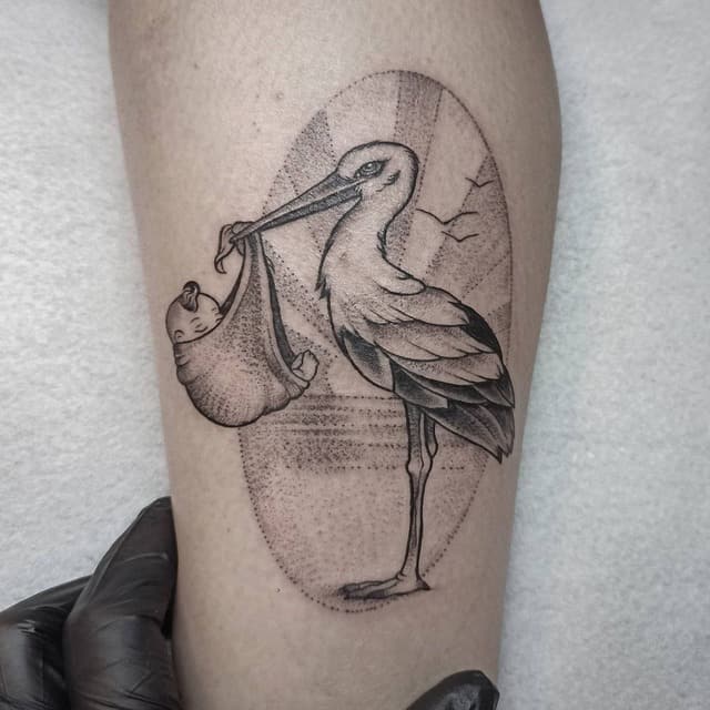 Подібне значення матиме і татуювання лелека – захист будинку, сімейного вогнища від нещасть і бід, достаток, добро, удача, материнство.