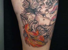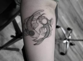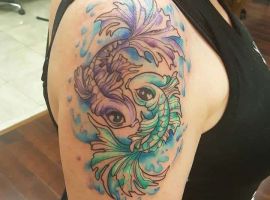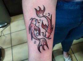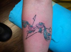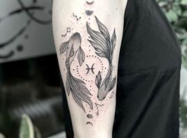Риби – це натури творчі, гармонійні і милі. Мабуть, мало знайдеться тих, хто готовий в чомусь дорікнути представников цього знаку Зодіаку. Риби частіше згладжують конфлікти, а якщо і доводиться в них вступати, то швидше погодяться зі своїм опонентом, щоб ще більше не роздмухувати сварку. Татуювання знак зодіаку риби досить популярна у людей, які народилися під цим сузір’ям. Їм подобається прикрашати свої тіла цікавим символом, який передає розум, гармонію і інтуїцію. Але є й чимало людей, які вибирають рибок просто через їх візуальну привабливость, хоча самі відносяться до іншого знаку Зодіаку. У будь-якому випадку майстри тату салону Альянс готові зробити ескіз відповідно до будь-яких ваших ідей, нехай навіть вони є і дуже сміливими, незвичайними.