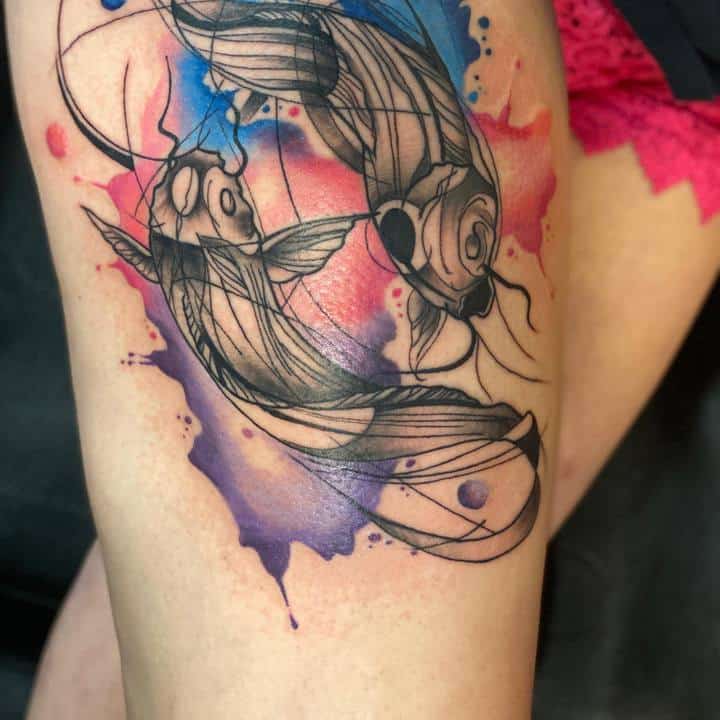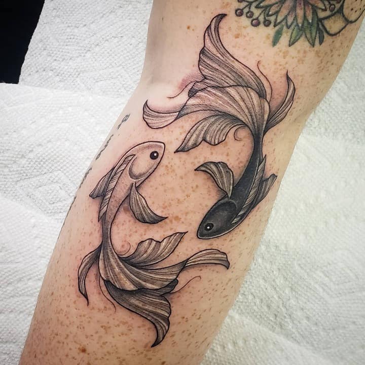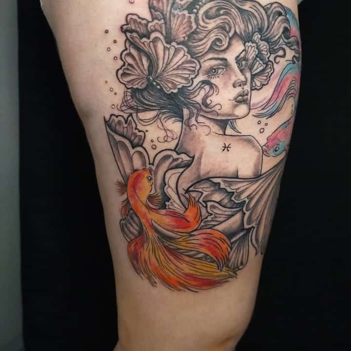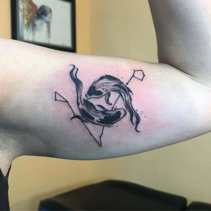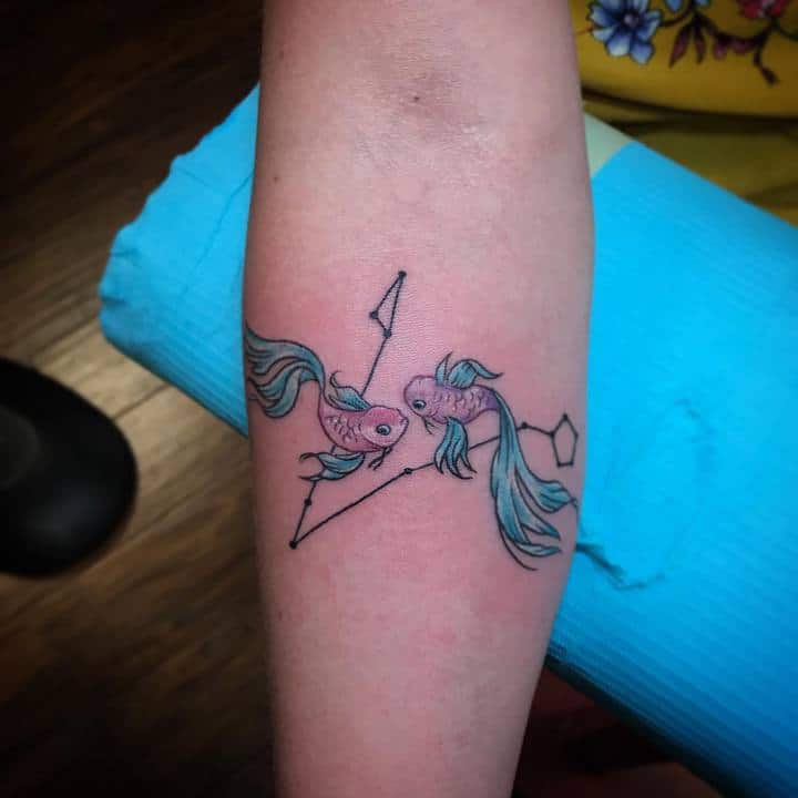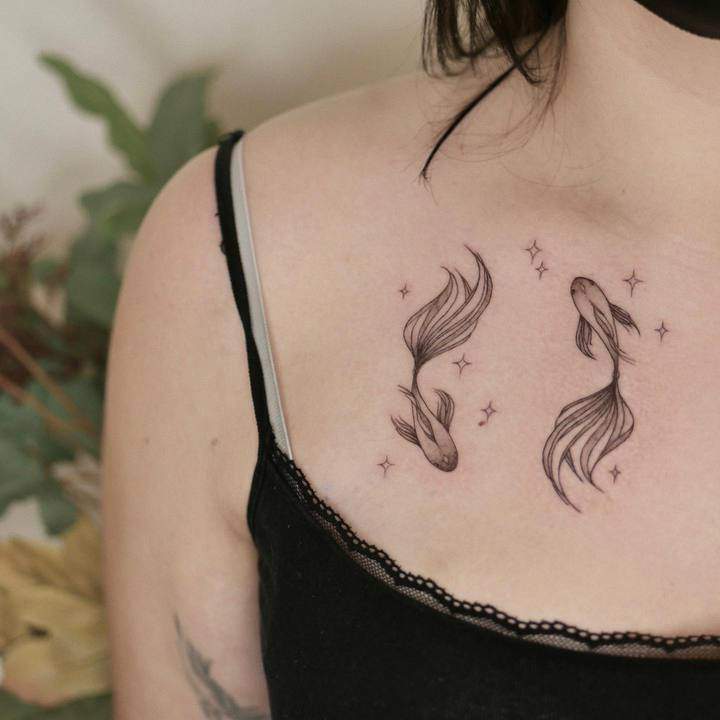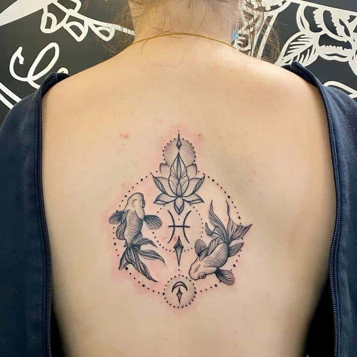 Але в цілому мають у своєму розпорядженні тату риб зазвичай на невеликих ділянках тіла. Пов’язано це насамперед з тим, що такі татуювання зазвичай виконуються не масштабними, а досить мініатюрними. Відмінно підійде область щиколотки, ключиці, лопатки, зап’ястя. Стильно буде виглядати невеликий знак Риби за вухом або на перших хребцях ближче до волосся.