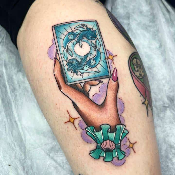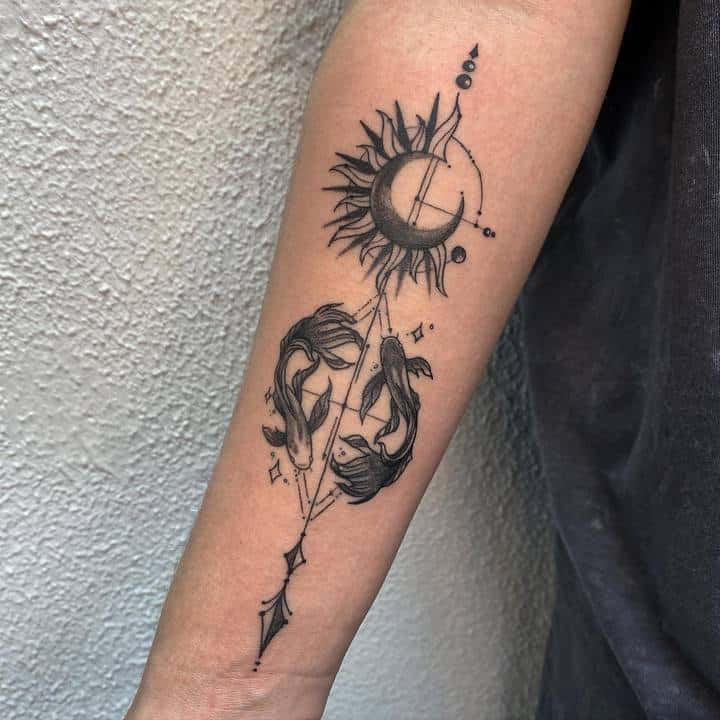 Татуювання знак зодіаку риби насамперед символізує бажання людини творити, бути вільним у цій творчості. «Водний» знак наголошує на тому, що людина відправився б у «вільне плавання». В цілому ж риби – люди мислячі, яким важливо докопатися до суті речей, знайти щось нове в оточуючому світі. Тому тату стає і оберегом, який спрямований на пошук себе.