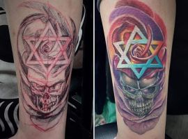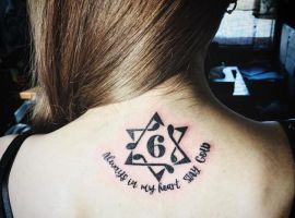 Звичайно, багато людей наносять на шкіру таке тату, як данину віросповіданню. Це ідеаліст, який живе по совісті і все в житті робить по совісті. Так як він знає, що в світі де все взаємопов’язано, все закономірно. Це впевнена в собі людина, до якої тягнуться люди, а тому вона може бути лідером. Відомо, що зірка Давида – дуже важливий символ в іудаїзмі. Гексаграма – як символ відданості Богу більш чоловіче тату.