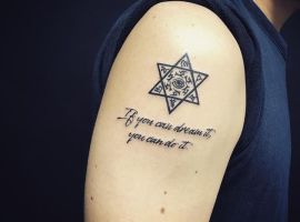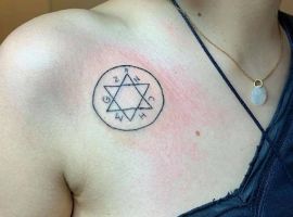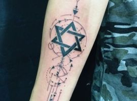 Татуювання з різними геометричними фігурами досить популярні в Києві. Особливо, якщо ця фігура має особливий символізм. Наприклад, дуже цікаві ідея і значення татуювання Зірка Давида.