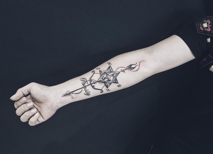 Татуювання з різними геометричними фігурами досить популярні в Києві. Особливо, якщо ця фігура має особливий символізм. Наприклад, дуже цікаві ідея і значення татуювання Зірка Давида.
