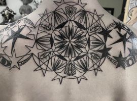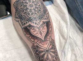 Нередко узоры на плече, животе, спине комбинируют с другими изображениями. Но стоит отметить, что орнамент должен соответствовать по тематике основному рисунку, быть выполнен в одном стиле.