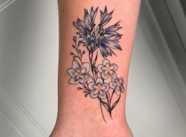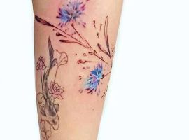 Тату с изображением васильков могут быть выполнены в различной технике: