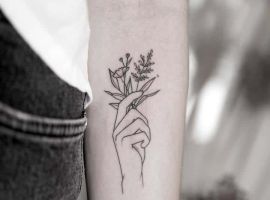 - В минималистичном стиле. Рисунок состоит из одного цветка, небольшого по размерам. Стебель подчеркнуто тонкий, а листьев немного. Его можно сделать цветным, но черно-белый вариант будет эффектнее.