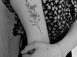 Тату василька – идеальный выбор для девушки. Рисунок указывает на способность любить крепко и искренне. Он сообщит о верности владелицы, ее внутренней чистоте. Такая девушка обладает твердым характером, но не лишена внутренней силы.