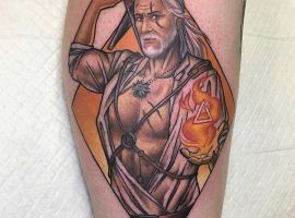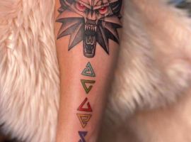 Некоторые делают тату с другой героиней сериала – Йеннифэр. Чародейка прошла непростой путь от девушки-уродки, над которой все издевались, до могущественной и прекрасной колдуньи. С Геральтом её связывала любовная симпатия.