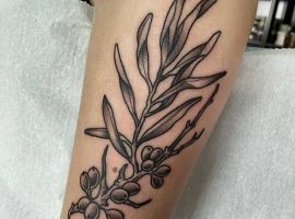 - Тату оливковая ветвь часто является талисманом для начала новой жизни. Именно веточку этого растения принес Ною голубь, оповестив о спаде воды после всемирного потопа.