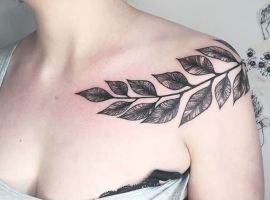 Место расположения зависит от размера и формы эскиза. Если рисунок планируется делать масштабный, то тогда лучше выбрать большие участки тела, к примеру, грудь, спину, бедро. В тоже время органично смотрятся крохотные веточки тату на ключице, на плечах, на предплечьях, на запястье, на руке. Отлично смотрятся парные веточки, которые будто отзеркаливают одна другую. Оптимальным местом для их расположения тату-мастера называют лопатки или ключицы.