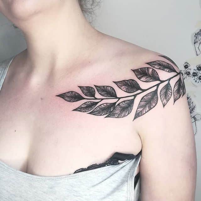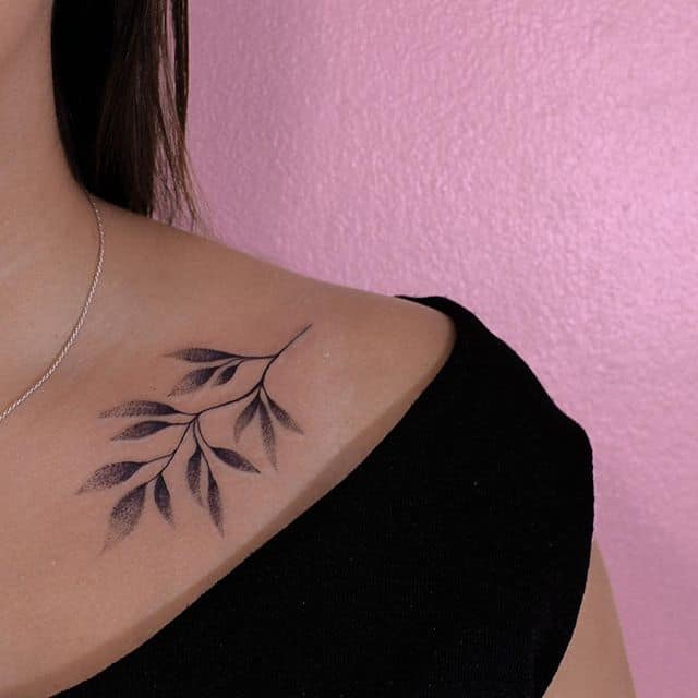 Место расположения зависит от размера и формы эскиза. Если рисунок планируется делать масштабный, то тогда лучше выбрать большие участки тела, к примеру, грудь, спину, бедро. В тоже время органично смотрятся крохотные веточки тату на ключице, на плечах, на предплечьях, на запястье, на руке. Отлично смотрятся парные веточки, которые будто отзеркаливают одна другую. Оптимальным местом для их расположения тату-мастера называют лопатки или ключицы.