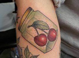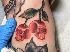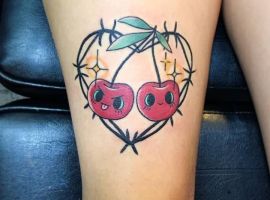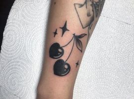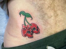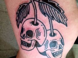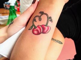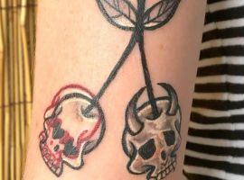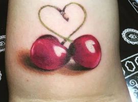 Вишня может быть выполнена в стилизованном виде. Например, если ягоды изображаются в виде сердечек, тату с вишенкой может обозначать любвеобильность человека, его стремление подчеркнуть свою сексуальность. Ягоды в виде черепов – символ того, что носитель тату считает, что любовь и смерть представляют собой единое целое и одно нельзя представить себе без другого.