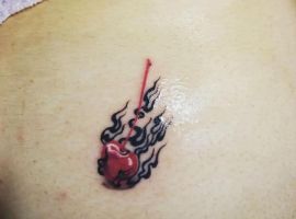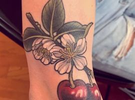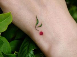 Зрелая вишня – это яркий вкус, неповторимый аромат, сочетание сладости и легкой кислинки. Вишня ассоциируется с яркостью лета и светом солнца. Кокетливая вишенка на теле обычно символизирует, что обладатель татуировки придает большое значение чувственным наслаждениям. Эти люди привыкли получать удовольствие от всего, чем занимаются, стремятся ярко ощущать вкус жизни. Татуировка означает, что ее носитель непостоянен в любовных связях и предпочитает часто менять партнеров.