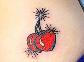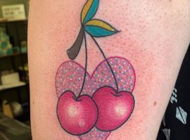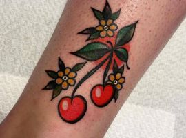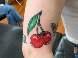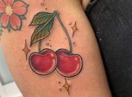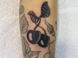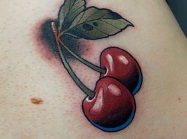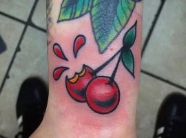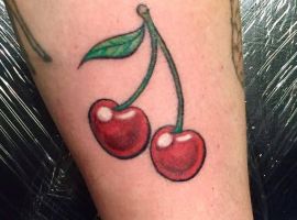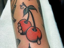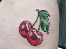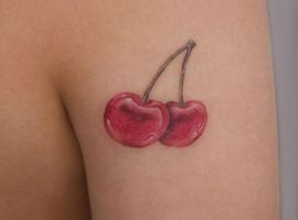 Кокетливая вишенка на теле обычно символизирует, что обладатель татуировки придает большое значение чувственным наслаждениям.
