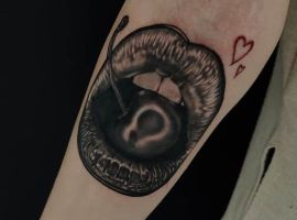 Зажатая в губах ягода отражает чувственность носителя татуировки, его раскрепощенность в постели!