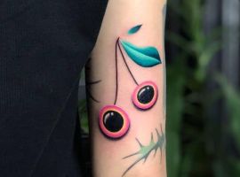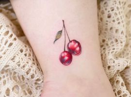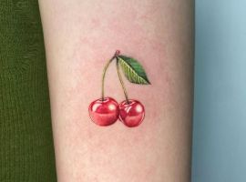 Очень привлекательно смотрится вишня в 3D. Такая тату выглядит так, словно на теле действительно лежит вишневая ягода. Реалистичные эскизы выбирают девушки, желающие украсить свое тело. При этом ягода может не быть значимым символом, она лишь выполняет декоративную функцию. Такие тату отлично смотрятся и на фото. Однако важно правильно выбрать мастера, который возьмется за воплощение идеи в жизнь. Реалистичный стиль – один из самых сложных, поэтому не стоит экономить на татуировке.