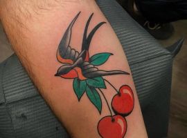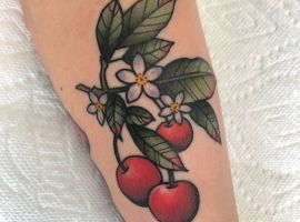 Татуировки вишенки пользуются огромной популярностью. Они не только привлекательно смотрятся на теле, но и могут иметь скрытый смысл, понятный только носителю тату вишня. Причем смысл этот зависит от стиля исполнения и выбранного эскиза.