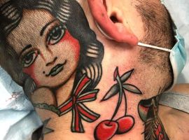 - тату с вишенкой под ключицами. Подобные тату обычно выполняются в стиле реализм или олд-скул и демонстрируют легкий нрав своего обладателя, его любовь к флирту и кокетству.