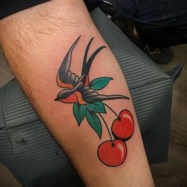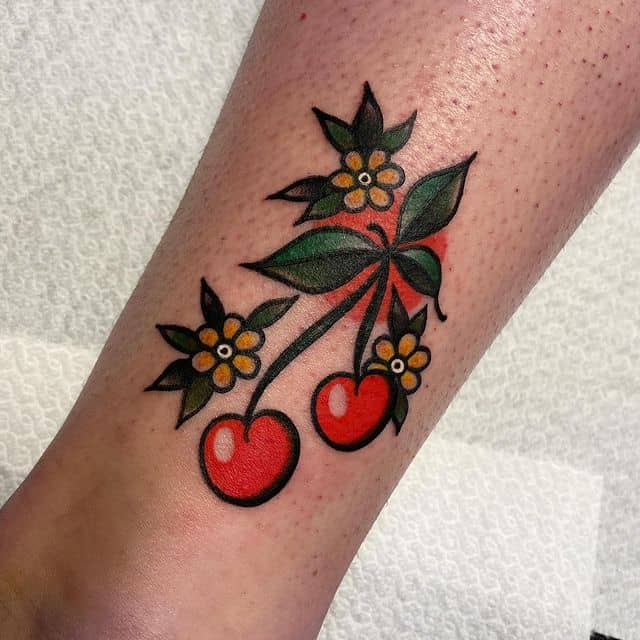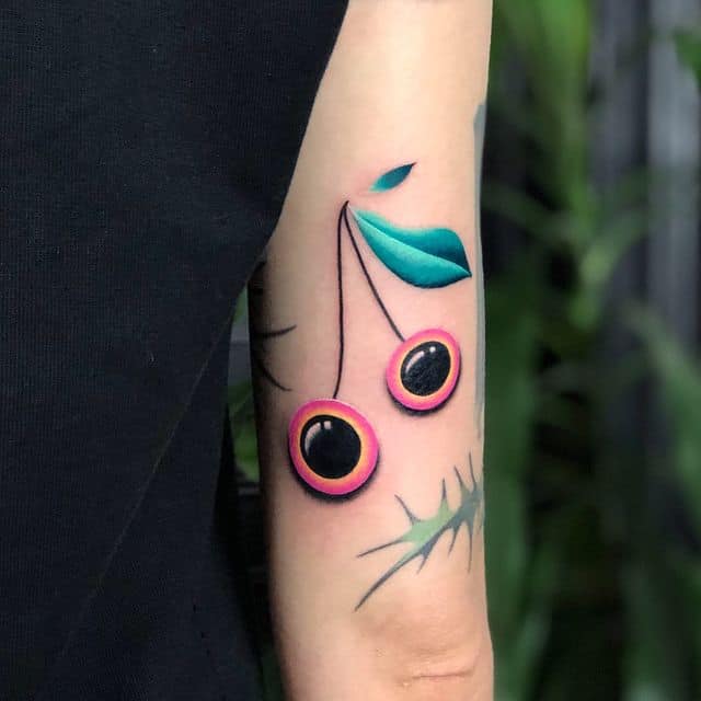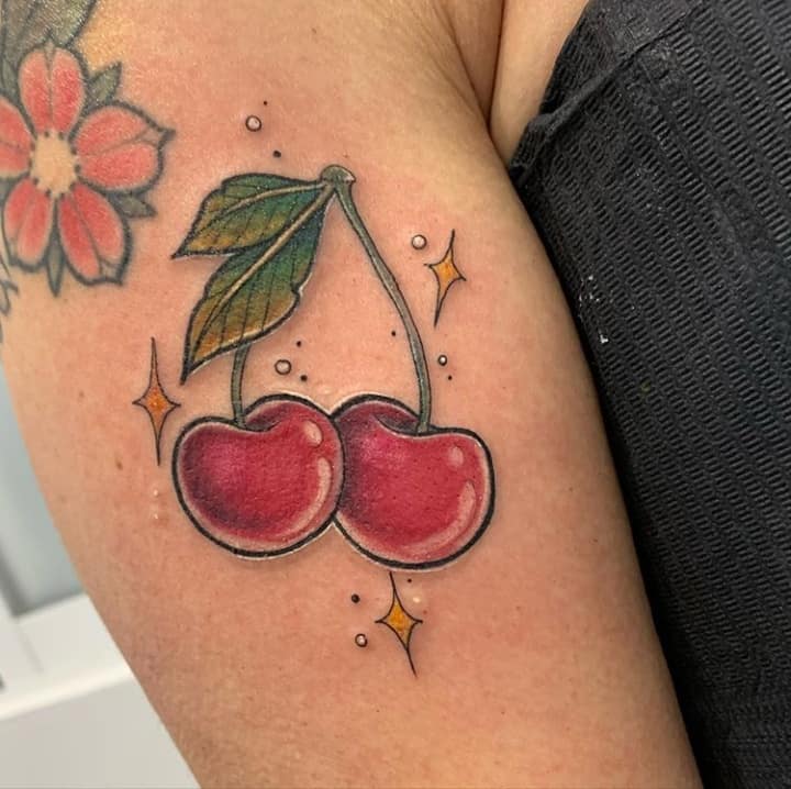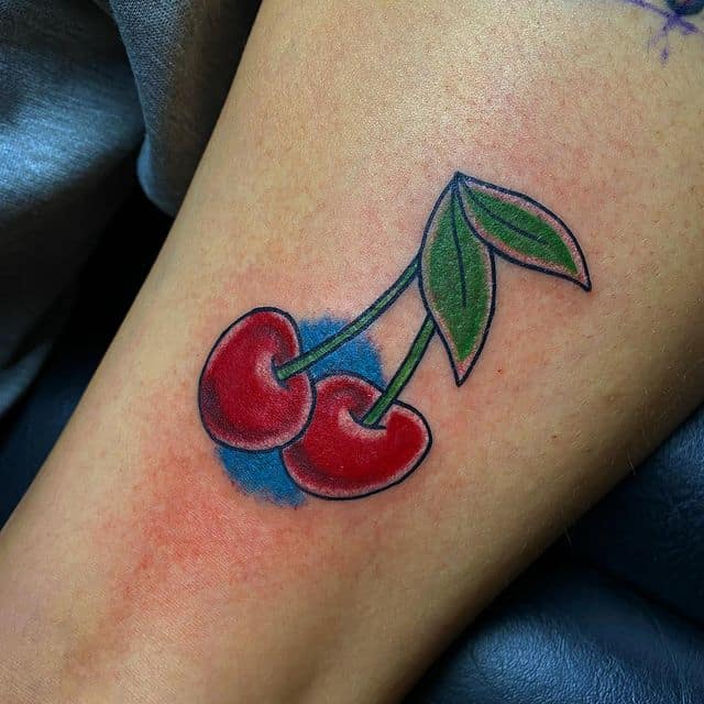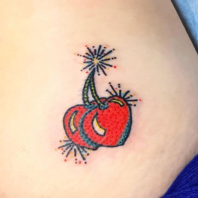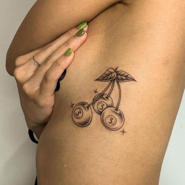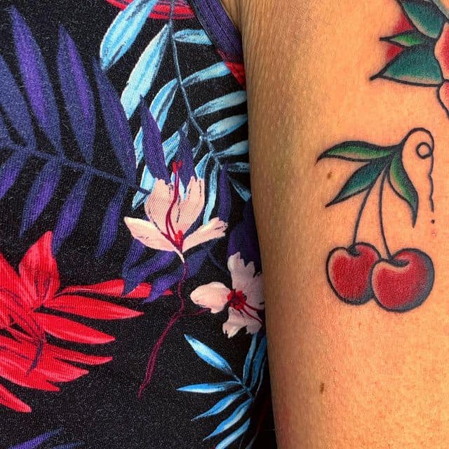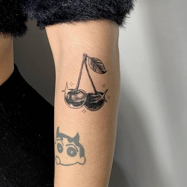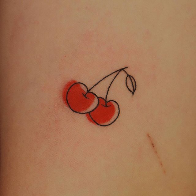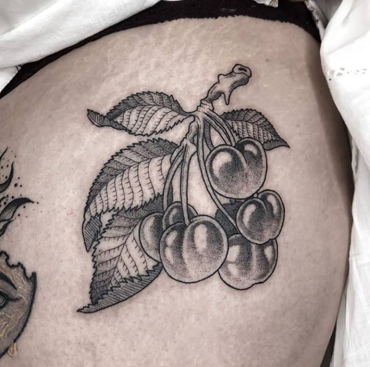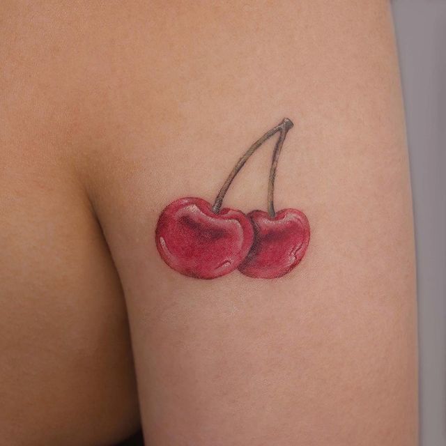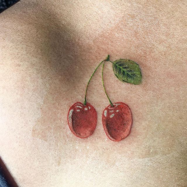Кокетливая вишенка на теле обычно символизирует, что обладатель татуировки придает большое значение чувственным наслаждениям.