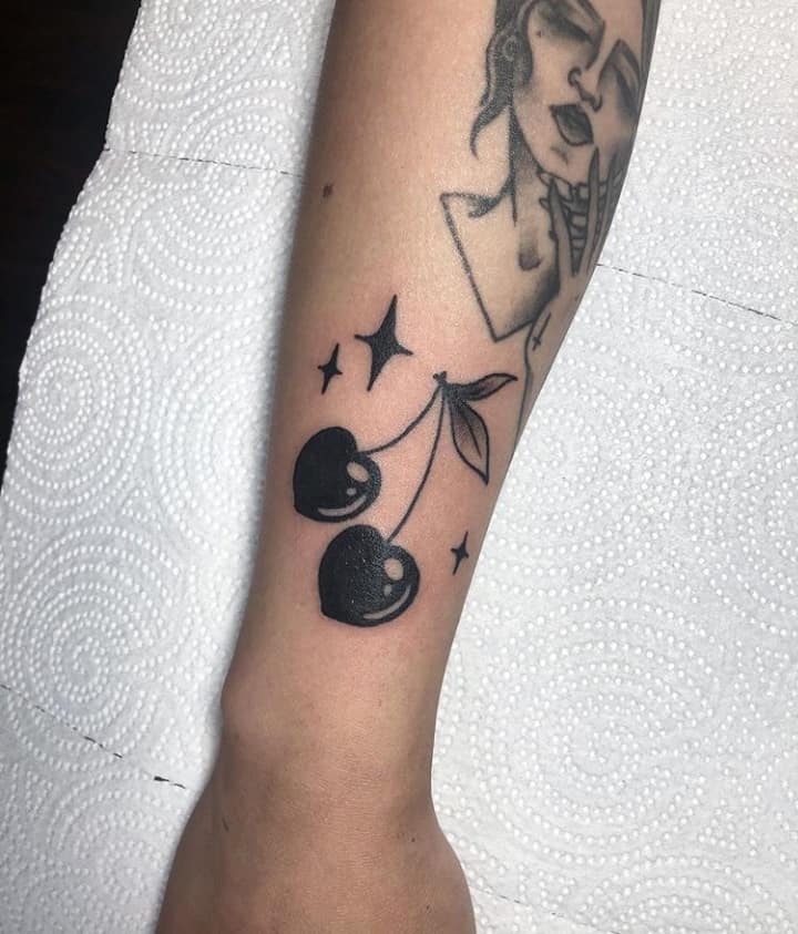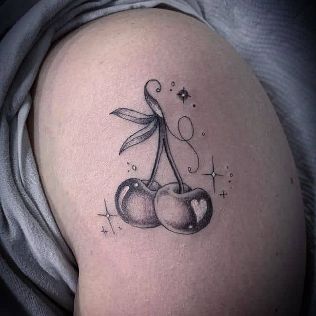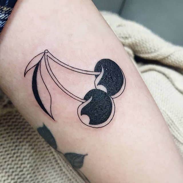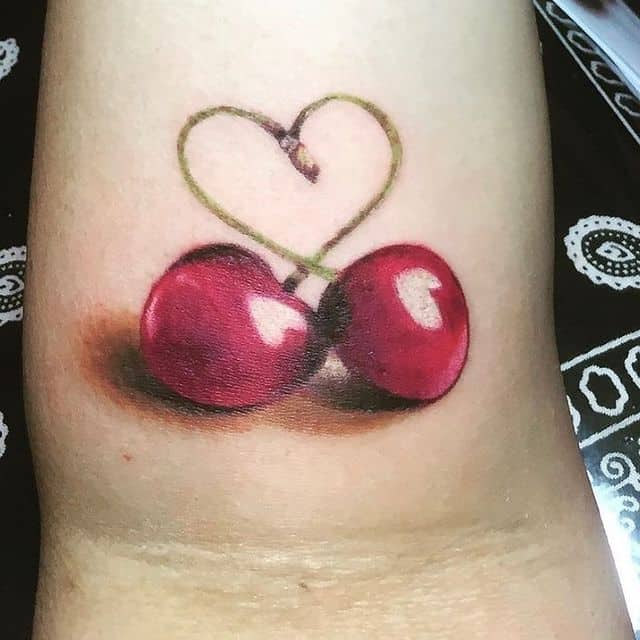 Вишня может быть выполнена в стилизованном виде. Например, если ягоды изображаются в виде сердечек, тату с вишенкой может обозначать любвеобильность человека, его стремление подчеркнуть свою сексуальность. Ягоды в виде черепов – символ того, что носитель тату считает, что любовь и смерть представляют собой единое целое и одно нельзя представить себе без другого.
