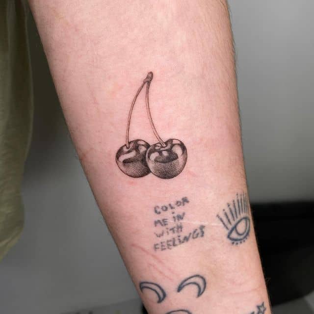 Тату черешня отражает зрелость своего обладателя, его любовь к жизни и желание получать от нее максимальное удовольствие.