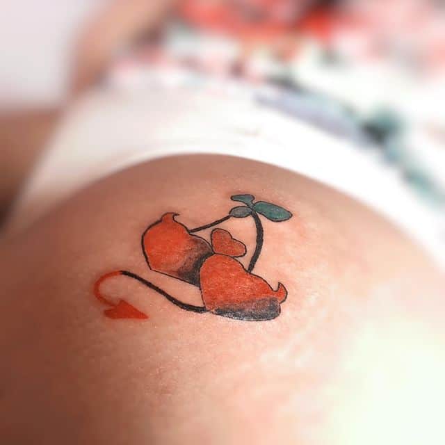 - тату вишня на попе также может быть милым украшением девичьего тела и намекать на желание испытать интересный сексуальный опыт;