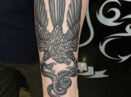 Конечно, никогда не выходили из моды патриотические тату-надписи, такие как известные лозунги: «Слава Украине», «Смерть врагам». Также военные ассоциируют себя с хищными животными: волком, медведем, львом и тигром. А также с птицами: соколом, беркутом, орлом и т.д.