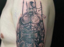 Также очень популярны среди военных образы воина и козака. Те, кто сегодня защищает независимость с оружием в руках – прямые потомки и продолжатели дела козачьего войска. Поэтому неудивительно, что солдат ВСУ наносит на кожу образ воинственного козака с саблей в руках.