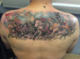 В каких стилях и где выполняются татуировки со всадниками на коне?