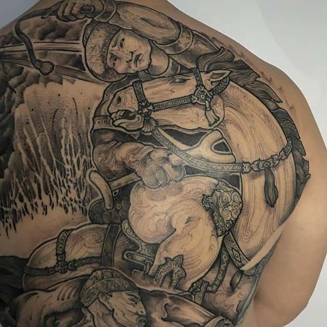 В каких стилях и где выполняются татуировки со всадниками на коне?