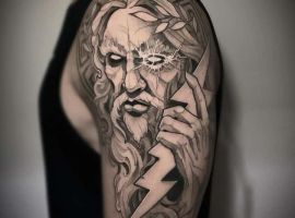 Мы все знаем, что именно Зевс считался верховным богом в мифологии античности. Он – самый могущественный и сильный, громовержец. Он убил своего собственного отца – Кроноса и покорил себе весь мир. Многие люди выбирают изображение с ним в качестве идеи для татуировки только ради красивой картинки.