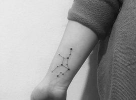 Но нередко выбирают тату Девы и мужчины. Обычно они располагают изображения на спине, на животе, на руке или на ноге. Выбирают они и созвездие, и надпись Virgo (латинское название Дев).