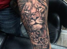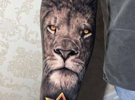 Отлично выглядит тату льва и на предплечье, лопатках, голени. Для самой масштабной тату лучше выбирать область спины или живота, бедра. Неординарно смотрится символ Льва, набитый на лопатках и позвоночнике. Он не будет заметен каждому, но летом на пляже можно блеснуть им.