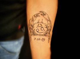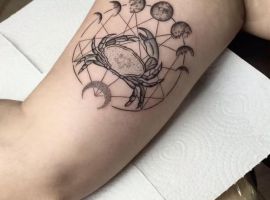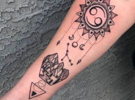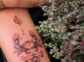 При этом совершенно неважно, что именно вы выберете в качестве татуировки – символ знака Зодиака, надпись Рак, рисунок звездного созвездия – значение будет схожим. Стоит отметить, что при выборе рисунка существа стоит каким-то образом «намекнуть» на зодиакальную принадлежность тату, ведь рак как животное в мире тату имеет другой смысл.