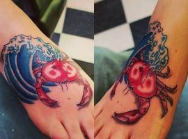 Довольно часто набивают Рака на запястье или предплечье. Это оптимальный вариант как для парней, так и для девушек. Тату-оберег способна помочь наладить отношения со своими близкими, найти любимого человека. Также можно увидеть и тату на ноге, на пояснице. Нужно сказать, что выглядят он тоже замечательно.