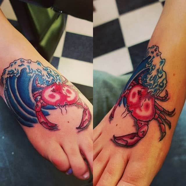 Довольно часто набивают Рака на запястье или предплечье. Это оптимальный вариант как для парней, так и для девушек. Тату-оберег способна помочь наладить отношения со своими близкими, найти любимого человека. Также можно увидеть и тату на ноге, на пояснице. Нужно сказать, что выглядят он тоже замечательно.