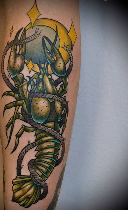 Тату знак зодиака рак может комбинироваться и с другими элементами. Довольно часто дополняют его другими морскими жителями, морскими звездами, жемчужинами, надписями, монетками, цветами. Стильно будет смотреться изображение знака Зодиака с различными графическими элементами, Луной.