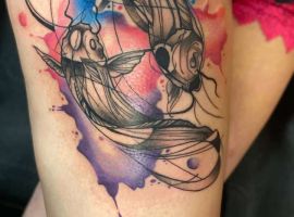 Рыбы – личности всегда неординарные, любящие творить. Поэтому они выбирают не всегда стандартные стили для своей татуировки, которая подчеркивают астрологическую принадлежность. Это может быть интересная акварельная техника, которая поразит буйством красок, или же утонченная графика, цепляющая взгляд. Часто хотят скомбинировать сразу несколько стилей, что, нужно признать, выглядит довольно интересно.