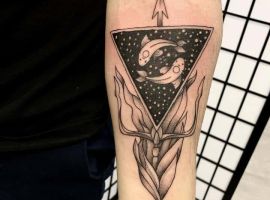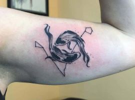 Тату знак зодиака рыбы прежде всего символизирует желание человека творить, быть свободным в этом творчестве. «Водный» знак подчеркивает то, что человек отправился бы в «свободное плавание». В целом же рыбы – люди мыслящие, которым важно докопаться до сути вещей, найти что-то новое в окружающем их мире. Поэтому тату становится и оберегом, который направлен на поиск себя.