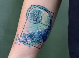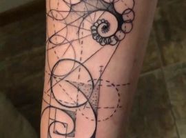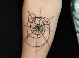 Явление спирали Фибоначчи произошло от итальянского исследователя. Параллельно с тем, как числовая последовательность внутри спирали увеличивается, образовывается, так называемое золотое сечение. Это мистифицируемое явление сопровождает людей на каждом шагу, начиная пропорциями вселенной, заканчивая объектами на земле и живой природой. Люди, решившиеся на подобное тату, считают, что смогут выразить через него высшую силу или бога, поскольку эти сущности присутствуют во всех своих творениях.